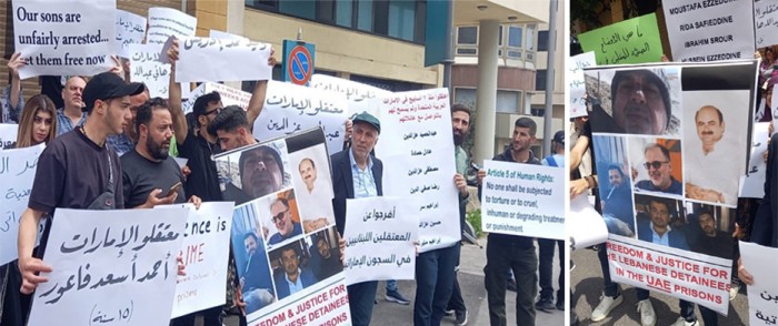 نفذ أهالي اللبنانيين الموقوفين في الإمارات العربية وقفة احتجاجية امام مقر وزارة الخارجية اللبنانية في بيروت لمطالبة الدولة بكشف مصير أبنائهم واحتجاجا على التقصير في متابعة هذه القضية الوطنية الحساسة. ورفع الأهالي لافتات بأسماء الموقوفين في الامارات ، واعتبروا السكوت عن هذا الملف جريمة في ظل غياب اي معلومات تفيد باوضاعهم داخل السجون الاماراتية.