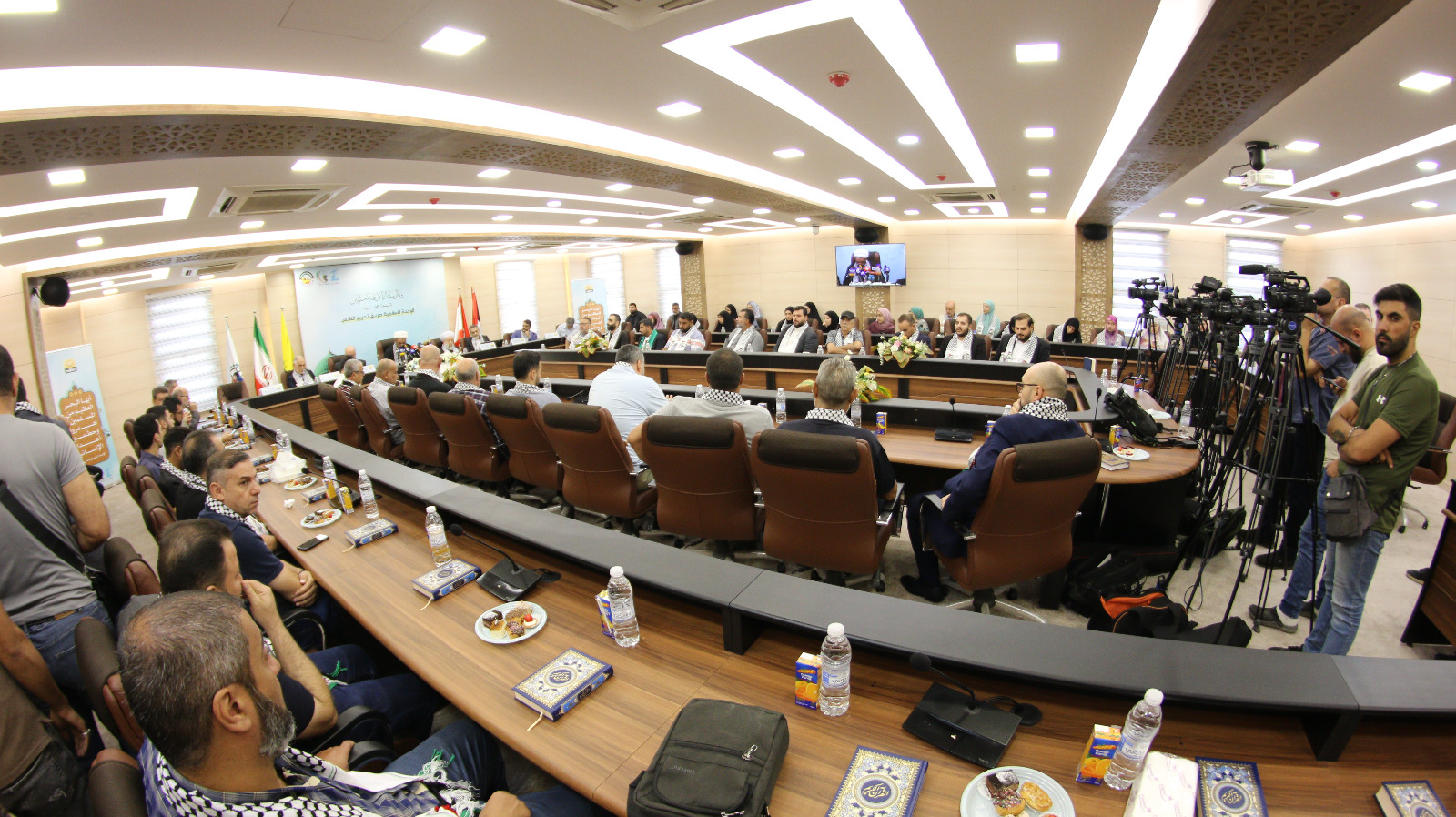 عضو المكتب السياسي في حركة الجهاد الإسلامي الشيخ علي أبو شاهين قال في كلمته: “إننا في حركة الجهاد الإسلامي في فلسطين نقول بلا مواربة إن التطبيع هو صك استسلام أمام المشروع الغربي لصالح الكيان الصهيوني على حساب شعوب امتنا ومصالح أبنائها ومستقبل أجيالها. وإننا وإذ ندعو الأمة بكل أطيافهاوطوائفها ومذاهبها وأحزابها وفرقها إلى الوحدة على طريق القدس ونؤكد أننا ماضون في مقارعة العدو في الميدان ومشاغلته في كل ساحات فلسطين.وإننا وبهذه المناسبة ندين كل عملية آثمة تستهدف قتل الأبرياء في المساجد بسبب انتمائهم المذهبي وإن كنا على قناعة تامة بأن مرتكبي هذه الجرائم أعداء الأمة سواء أعرفوا ذلك أم لم يعرفوه كمثل تلك الحادثة التي شاهدناها مؤخراً في باكستان أو غيرها من بلاد المسلمين”.