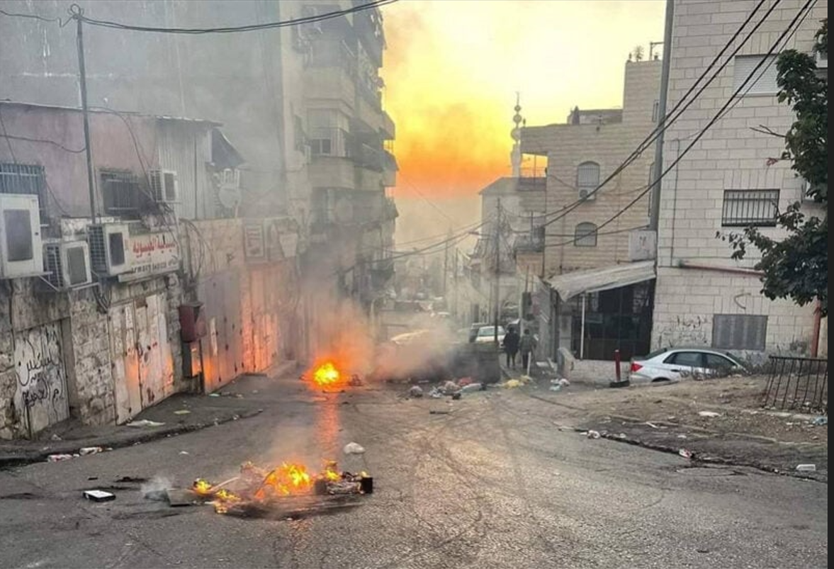 شبان يشعلون الإطارات المطاطية في مدينة طوباس أثناء التصدي لاقتحام الاحتلال للمدينة