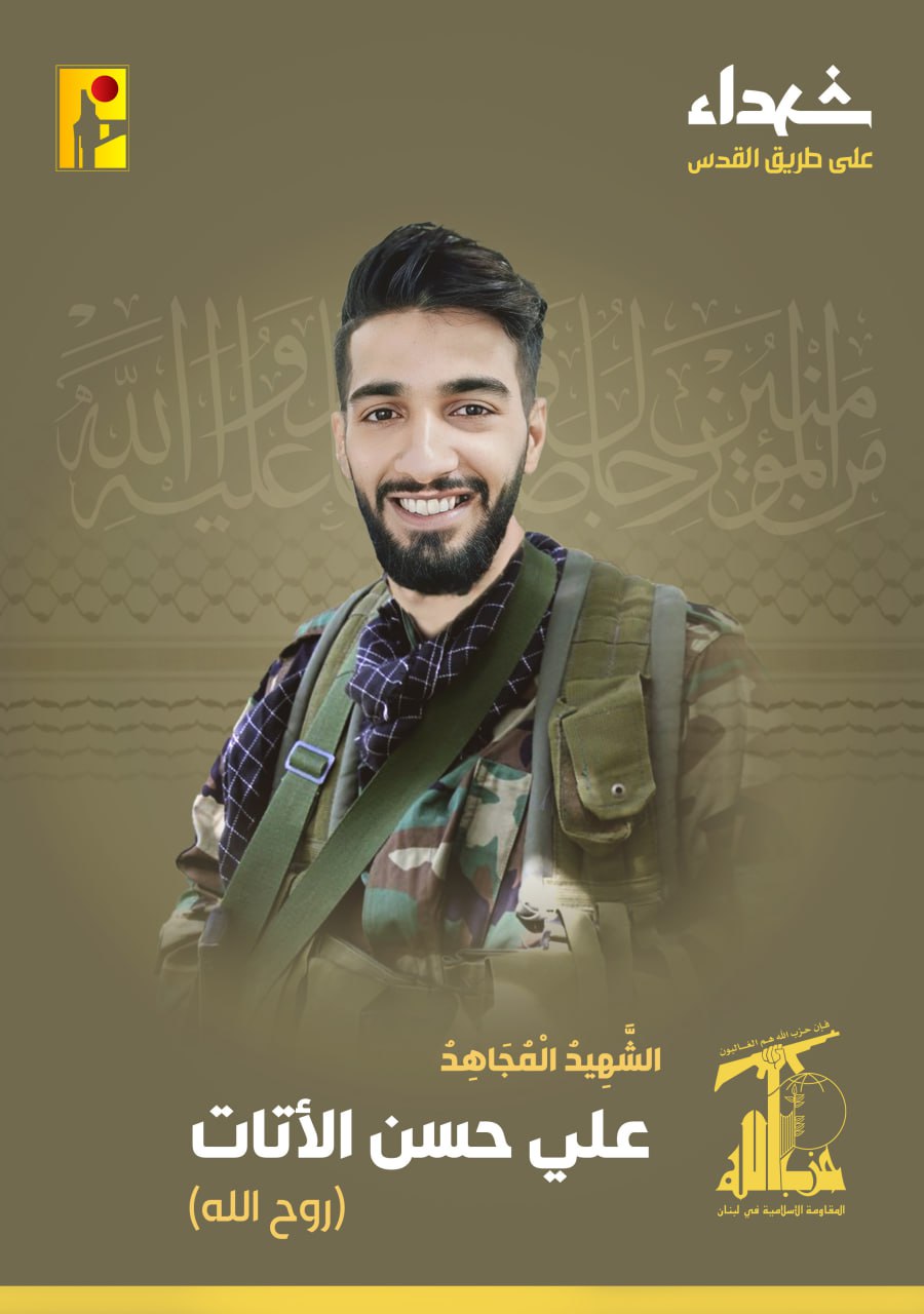 زفت المقاومة الإسلامية الشهيد المجاهد علي حسن الأتات “روح الله” الذي ارتقى شهيداً على طريق القدس.