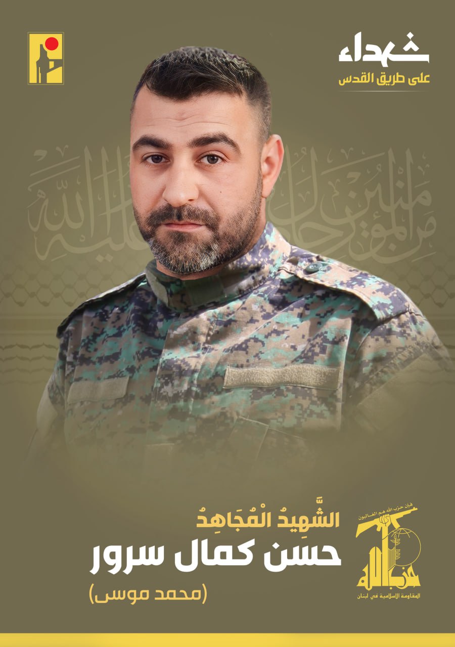 بمزيد من الفخر والإعتزاز، تزف المقاومة الإسلامية الشهيد المجاهد حسن كمال سرور “محمد موسى” من بلدة عيتا الشعب في جنوب لبنان، والذي ارتقى شهيداً على طريق القدس.