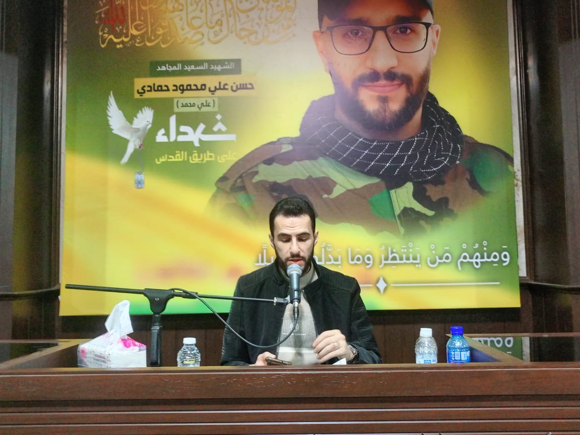 تكريماً وتخليداً لدمائه الزاكية وإحياءً لذكراه العطرة، أقام حزب الله مجلس عزاء حسيني عن روح الشهيد السعيد على طريق القدس، حسن علي محمود حمادي في مجمع الإمام الحسن العسكري (ع) في الكفاءات، بحضور عضو كتلة الوفاء للمقاومة النائب رائد برو، وعدد من الفعاليات والشخصيات، وعلماء دين، وعوائل شهداء، وحشد من الأهالي.