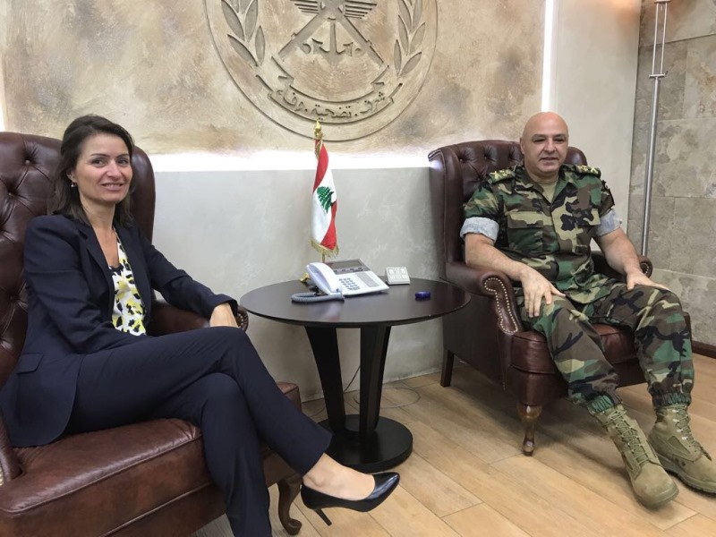التقت رئيسة بعثة الاتحاد الأوروبي في لبنان السفيرة كريستينا لاسن اليوم قائد الجيش العماد جوزاف عون، وقدمت له التعازي بالعسكريين اللبنانيين الذين سقطوا أخيرا ومنذ عام 2014 دفاعا عن الحدود الشرقية اللبنانية ضد الجماعات المتطرفة.
