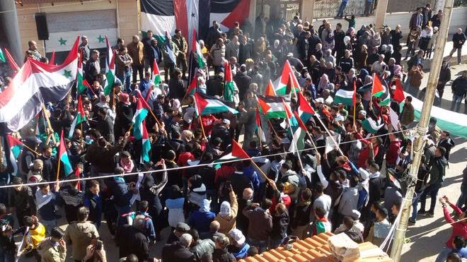وقفة احتجاجية أمام مقر وكالة غوث وتشغيل اللاجئين بدرعا ضد قرار الرئيس الأمريكي حول القدس المحتلة.