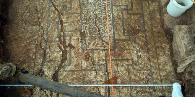 وأوضح فرزات أن بعدي اللوحة 5ر13 و30ر2 متر وتتضمن زخارف وأشكالا هندسية وكتابات باللغة اللاتينية تعود في مجملها للقرن الخامس الميلادي وتحديدا إلى عام 412 وهي عبارة عن أرضية لكنيسة تعود للفترة البيزنطية مبينا أن كوادر دائرة الآثار قامت بنقلها الى متحف حماة الوطني لعرضها ضمن صالاته.