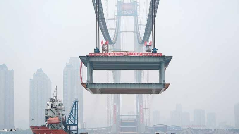ومن المتوقع أن يتم الانتهاء من الجسر، الذي يمتد فوق نهر يانغتسي، أطول نهر في الصين، في مدينة ووهان، البالغ عدد سكانها 10 ملايين نسمة، وهي عاصمة مقاطعة هوبي، في أكتوبر المقبل بحسب ما ذكرت صحيفة “ديلي ميل” البريطانية.