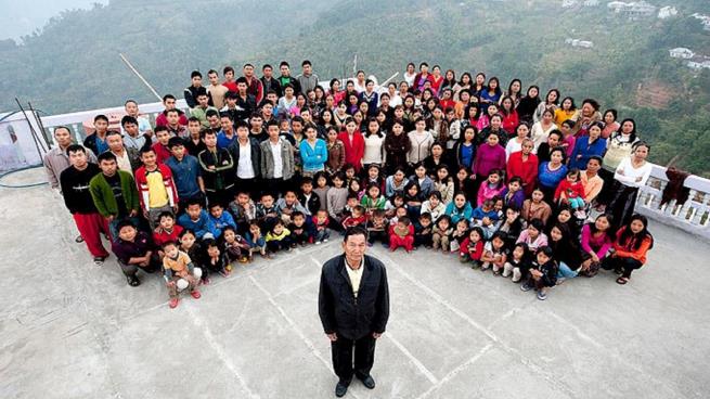 1- عائلة زيونا الهندية: تعتبر عائلة زيونا التي تعيش في ولاية ميزورام الهندية، أكبر عائلة في الهند، حيث بلغ عدد أفرادها عام 2018، 167 فردًا، ويتألفون من رب العائلة زيونا شانا الذي تجاوز عمره 70 عامًا، وزوجاته الـ39، وكذا أبنائه الـ94 وأحفاده الـ33، وفقًا لموقع “hummingbirdstrail”.