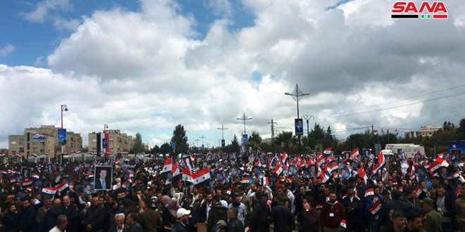 أقيم اليوم الاربعاء احتفال مركزي في مدينة البعث بمحافظة القنيطرة، احتفاء بالذكرى الثالثة والسبعين لجلاء المستعمر الفرنسي عن أرض الوطن وتأكيداً على هوية الجولان العربية السورية، برعاية الرئيس بشار الأسد.