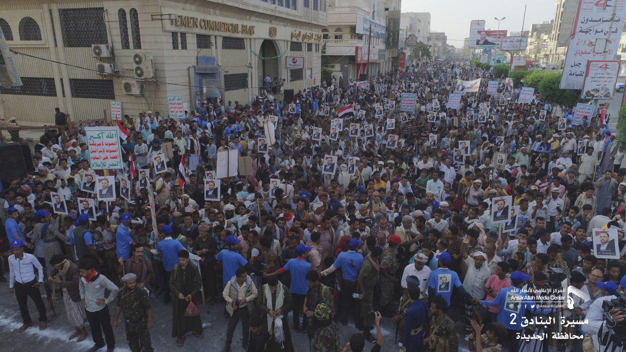 وخلال المسيرة التي شارك فيها محافظ سقطرى هاشم السقطري، أكد القائم بأعمال محافظ الحديدة محمد عياش قحيم إصرار أبناء الحديدة في السير على نهج الرئيس الشهيد الصماد في الدفاع عن المحافظة واستقبال المعتدين برؤوس البنادق. وأشار إلى أن الحشد الكبير في هذه المسيرة يؤكد التزام أبناء الحديدة ومواصلتهم الصمود في وجه العدوان ومرتزقته بكل إمكانياتهم ورفد الجبهات بالمال والرجال والعتاد.