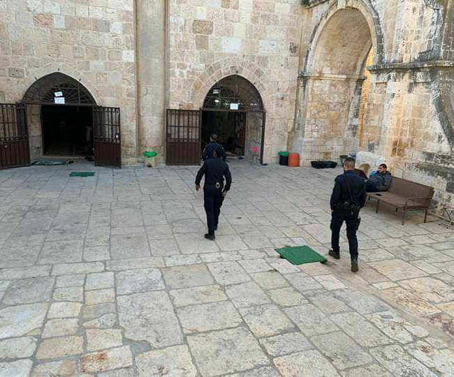 اعتقلت عناصر شرطة العدو الإسرائيلي الثلاثاء سيدة فلسطينية وشاب في ساحة المسجد الأقصى المبارك بالقدس المحتلة.
